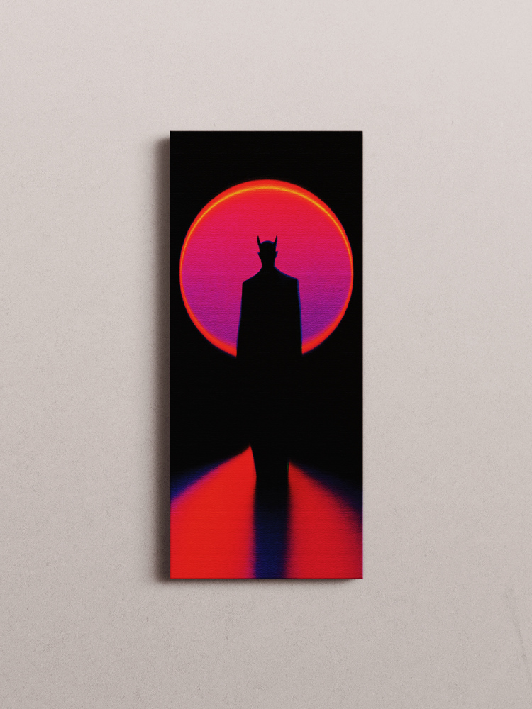 Minimal yet loaded with tension, this piece feels like a movie poster for a story you’re dying to know: villain or guardian, demon or deity, or simply the shadow we all carry. Perfect for collectors who love bold visuals, dark aesthetics, and modern graphic art.